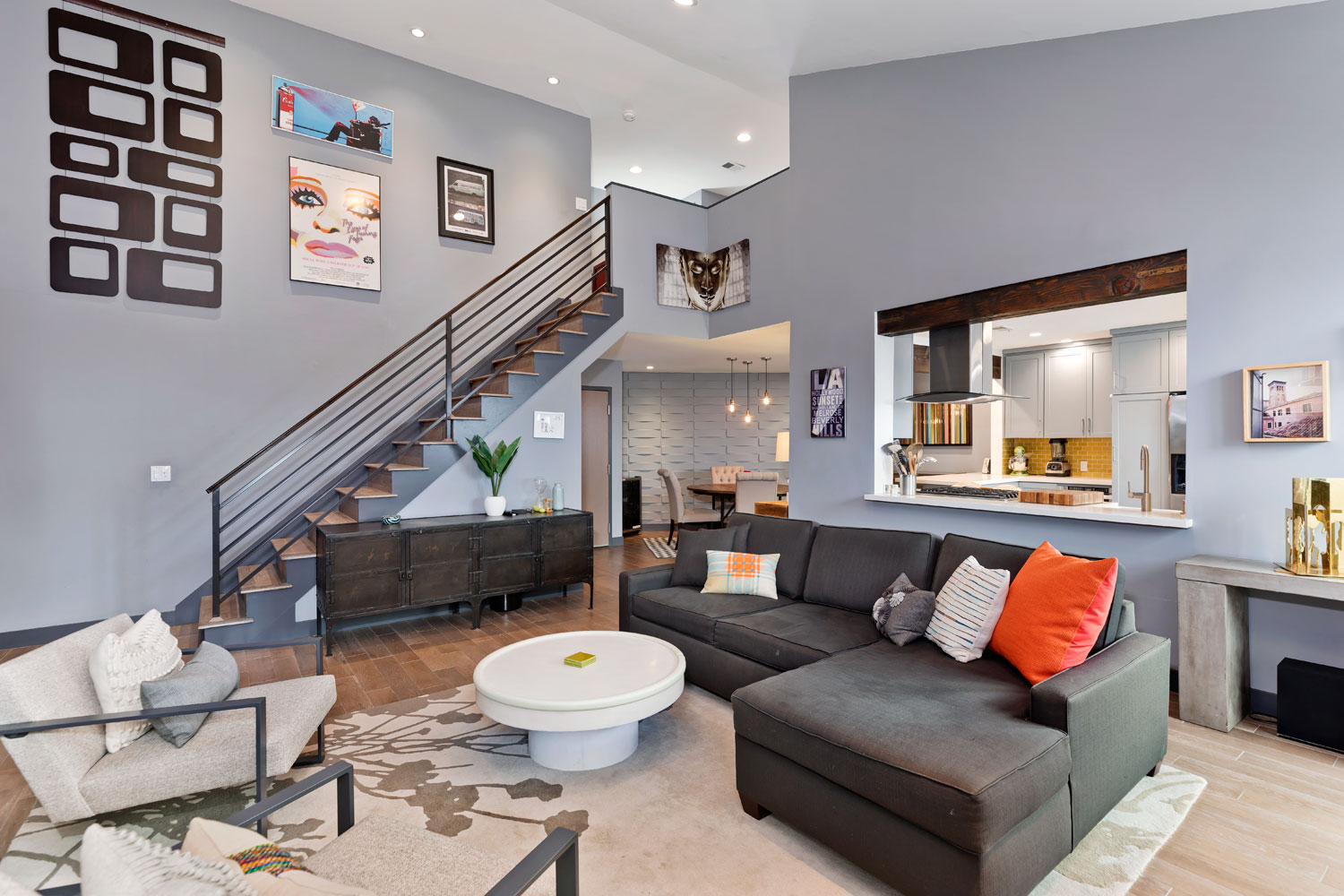 Stunning 3 bed 3 bath two-story southwest facing Penthouse w/ city views in Prime West Hollywood. Bright, open, and spacious, this extensively remodeled top floor home features a tastefully renovated (2014) open cook’s kitchen w/ custom cabinets, quartz countertops, stainless appliances, subway glass tile backsplash, exposed wood beams, and large counter/peninsula perfect for entertaining. Newer engineered hardwood floors, recessed lighting, large living room w/ dramatic vaulted ceilings & limestone fireplace, dual paned windows throughout, formal dining room, central AC, laundry inside, 2 balconies, large master suite w/ walk-in closet, 3 luxurious bathrooms, & great storage/closet space! 3rd bedroom is an open loft style perfect as an office or guest bedroom. Small well maintained 20 unit building has pool, spa, gym, elevator, lobby, controlled access, 2 side by side parking spaces, and newer landscaping. Located moments from the Pacific Design Center, Melrose Place, West Hollywood Park & Library, and the hottest restaurants, bars, café’s, hotspots, shopping, dining, and entertainment in West Hollywood. Feels like a house!